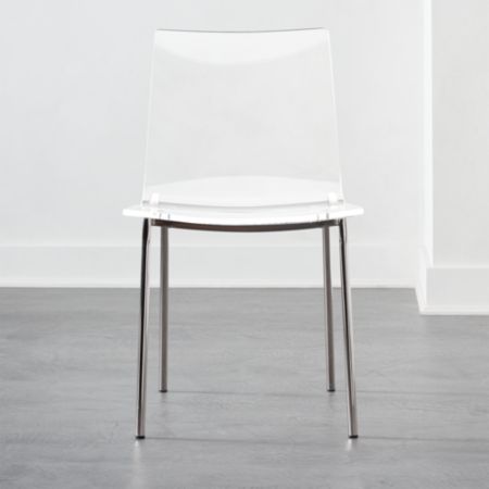 Shop for acrylic chairs at CB2. Bolla Clear Dining Chair Place on the end of a colorful sofa, or arrange a set around a dining table under an eyecatching .Italianmade seat bares it all in barelythere clear polycarbonate. Thickcut and modern, dining chair clearly works with any table. Even better, chairs stack up to .Shop Wayfair for all the best Clear Kitchen & Dining Chairs. Enjoy Free Shipping on most stuff, even big stuff..Online shopping from a great selection at Home & Kitchen Store..TOBIAS Chair, clear, chrome plated. A transparent chair that mirrors its surroundings. It picks up the colors of the room and appears to be floating..Shop for Clear Dining Chairs in Kitchen & Dining Furniture at Walmart and save..Shop Target for Clear Dining Chairs & Benches you will love at great low prices. Free shipping on orders of $35+ or sameday pickup in store..Shop AllModern for modern and contemporary clear lucite dining chairs to match your style and budget. Enjoy Free Shipping on most stuff, even big stuff..Clear Kitchen & Dining Room Chairs : Make mealtimes more inviting with comfortable and attractive dining room and kitchen chairs.